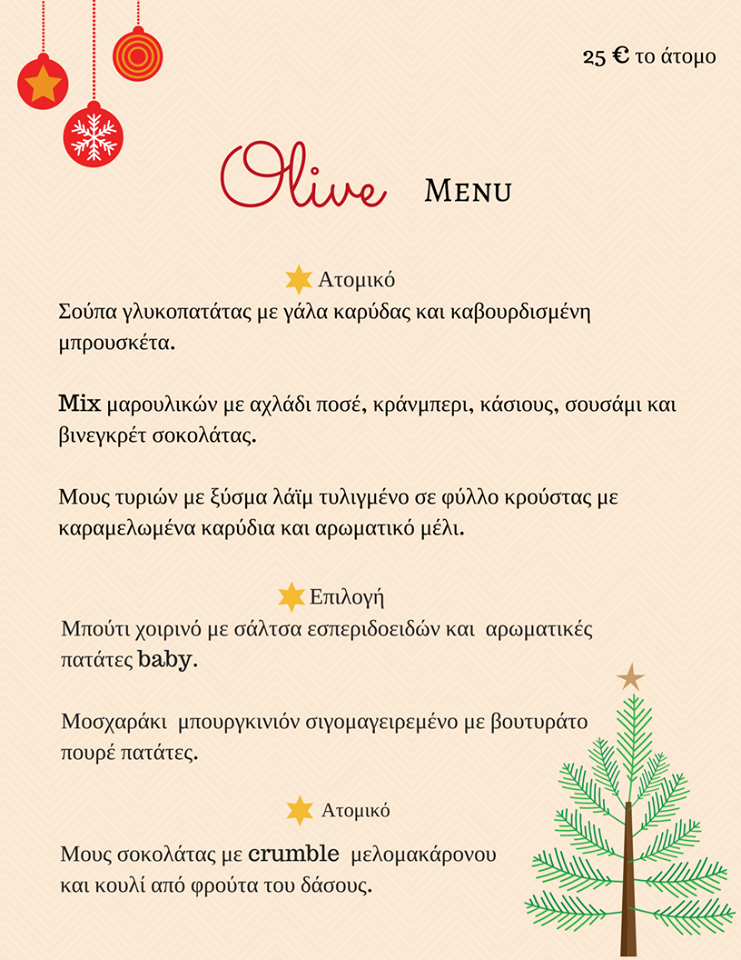 Το «Olive κουζίνα» φοράει τα γιορτινά του και μας περιμένει.
