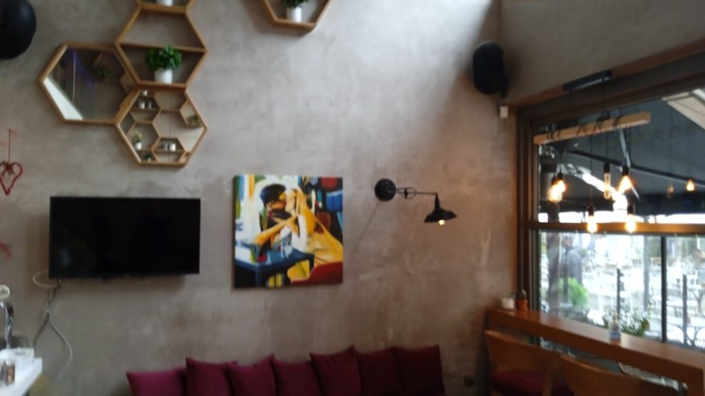 Το έργο θα είναι αναρτημένο όλο τον Απρίλιο στο Deux Amis στην Πλατεία Δεσποτικού.