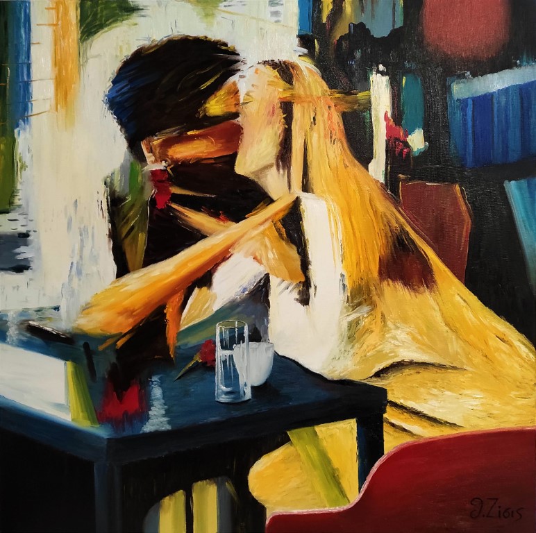 “Το φιλί”, λάδι σε καμβά , 80Χ80cm του Τρικαλινού καλλιτέχνη Θανάση Ζήση.
