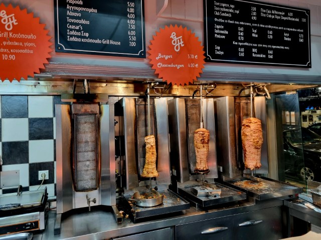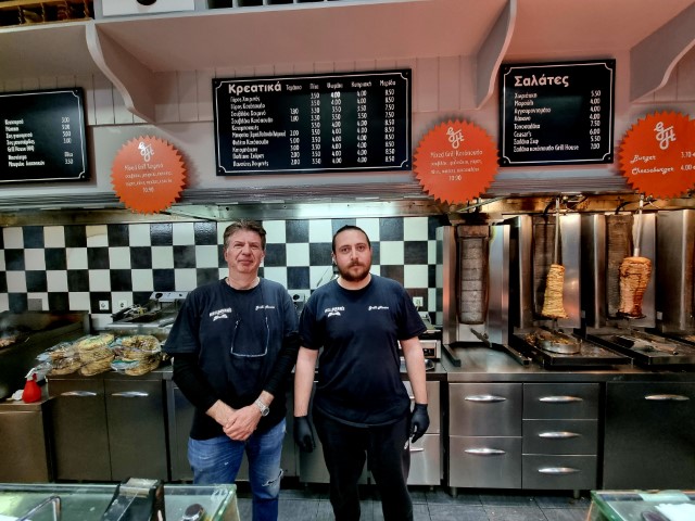 Η κυρία Ελένη ετοιμάζει κάθε πρωί τα χαρμάνια για τα κρέατα (… εκπληκτικός γύρος, απίθανο σουβλάκι) και ο σύζυγός της Κώστας μαζί με τον γιο τους Γιάννη τα ψήνουν μοναδικά και μας τα σερβίρουν. Εκτός από τα… best seller γύρο και σουβλάκι, απολαμβάνουμε club sandwich, mix κρεατικών, δροσερές σαλάτες, γνήσια αμερικάνικα burgers κ.α..