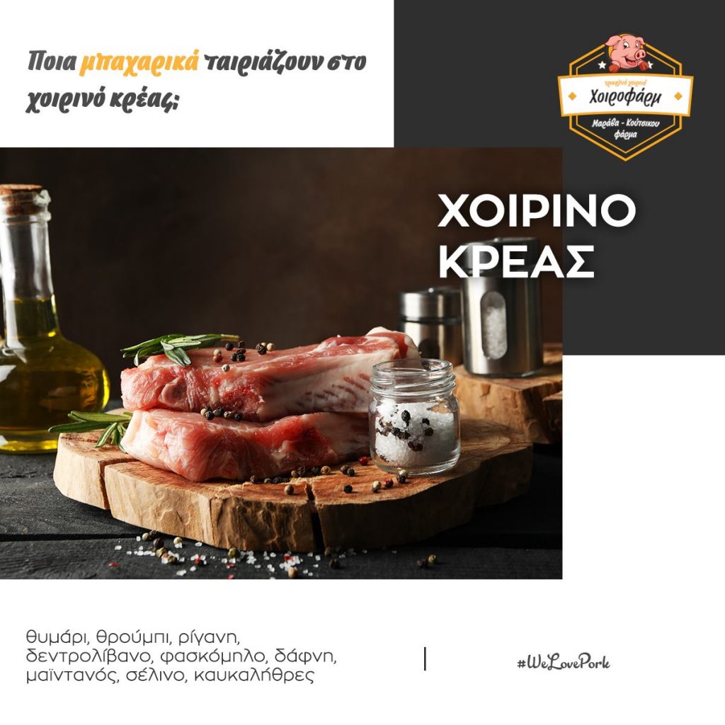 Για να απογειώσετε τη γεύση του χοιρινού κρέατος επιλέξτε ανάμεσα στα εξής: θυμάρι, θρούμπι, ρίγανη, δεντρολίβανο, φασκόμηλο, δάφνη, μαϊντανός, σέλινο, καυκαλήθρες.