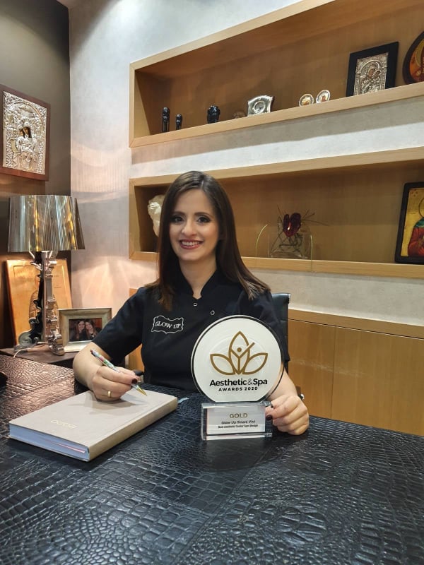 Πιο συγκεκριμένα το κέντρο αισθητικής Glow Up Sinani Vivi απέσπασε το πρώτο βραβείο πανελλαδικά στην κατηγορία BEST AESTHETIC CENTER – SPOT DESIGN. Το Βραβείο παρέλαβε η αδερφή της Σινάνη Βιβή κ. Νικολέτα Σινάνη και στην τελετή απονομής παρευρέθηκαν φίλοι και μέλη της οικογένειάς της. Αφού ευχαρίστησε την κριτική επιτροπή αλλά και όλους τους πελάτες που στηρίζουν τόσα χρόνια το ινστιτούτο η Βιβή Σινάνη θέλησε να αφιερώσει το βραβείο στους γονείς της.