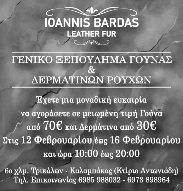 Bardas. Νέο μπαζάρ γούνας και δερμάτινου στα Τρίκαλα