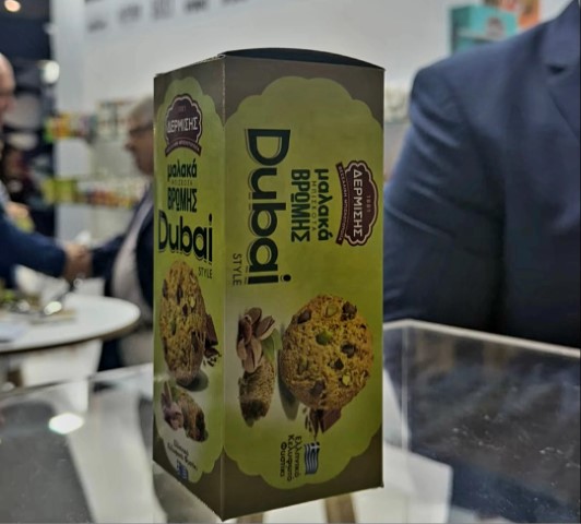 Όπως καταγράφει το trikalavoice.gr ήδη παρουσίασε στην πρόσφατη FOODEXPO το μπισκότο βρώμης… dubai, με έξτρα φιστίκι μέσα. Ωραίες εκπλήξεις.