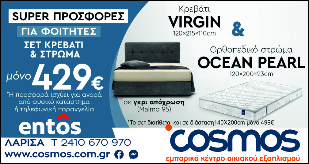 Επισκεφθείτε μας σήμερα και απολαύστε τις προσφορές μας για να διαμορφώσετε τον χώρο σας με ποιότητα και στυλ! Στο Cosmos, το φοιτητικό σας σπίτι μετατρέπεται στον πιο ζεστό και λειτουργικό χώρο με μοντέρνα και ανθεκτικά έπιπλα που αντέχουν στον χρόνο.