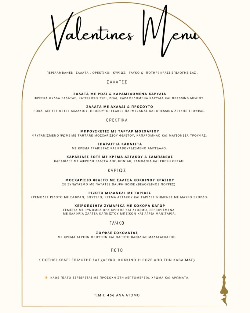 Στη ζωή, όπως και στη κουζίνα, ο έρωτας είναι το κύριο συστατικό. Γι’ αυτό και στο κορυφαίο steakhouse της Θεσσαλίας, στον ‘Πλάτανο” στη Μύκανη, έχουν ετοιμάσει ένα μοναδικό μενού για το βράδυ του Αγίου Βαλεντίνου.