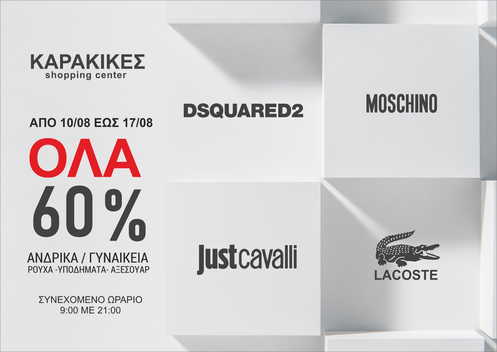 Σε νέες μεγάλες και… επιπλέον εκπτώσεις προχωράει το KARAKIKES Shopping Center. Έτσι από την Πέμπτη 10 έως και 17/8 όλα τα μεγάλα #BRANDS -60%. Περιορισμένα τελευταία κομμάτια!! Προλάβετε τα!