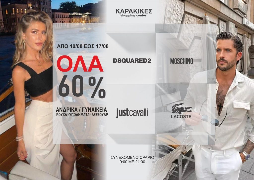 Σε νέες μεγάλες και… επιπλέον εκπτώσεις προχωράει το KARAKIKES Shopping Center. Έτσι από την Πέμπτη 10 έως και 17/8 όλα τα μεγάλα #BRANDS -60%. Περιορισμένα τελευταία κομμάτια!! Προλάβετε τα!
