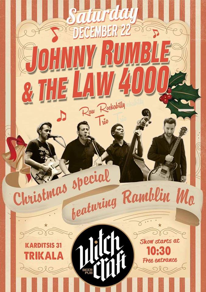 Η Witchcraft Pub διοργανώνει ακόμη μια ξεχωριστή βραδιά στα Τρίκαλα. Αυτό το Σάββατο σε μια… έξτρα Χριστουγεννιάτικη βραδιά, φιλοξενεί επί σκηνής τους JOHNNY RUMBLE & THE LAW 4000. Εκεί στην Witchcraft Pub θα δοκιμάσουμε περισσότερες από 150 μπύρες (!!!) και θα τις συνοδεύσουμε με παραδοσιακούς «μπυρομεζέδες» του κόσμου.