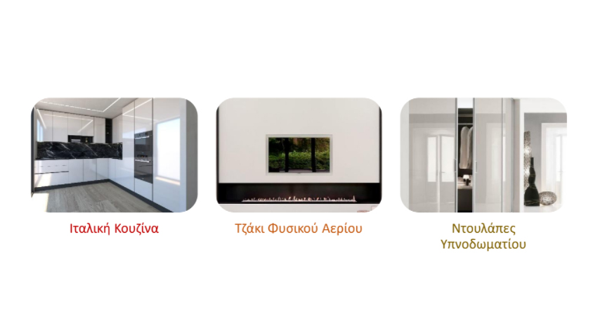 Τα πολυτελή διαμερίσματά τους κυμαίνονται από 52 τ.μ. έως 120 τ.μ. και χαρακτηρίζονται από την εργονομία και την λειτουργικότητά τους με σεβασμό πάντα προς το περιβάλλον.