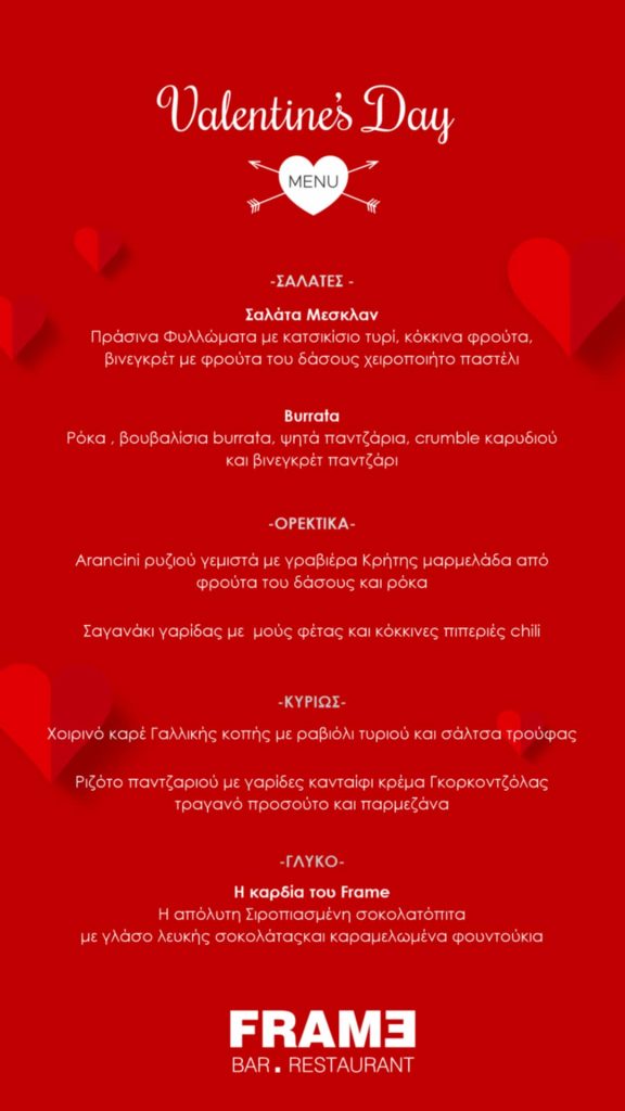 Για τη βραδιά των ερωτευμένων ετοιμάζεται το FRAME και οι σεφ τους έχουν εμπνευστεί από τον Άγιο Βαλεντίνο.