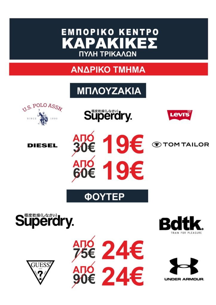 ΕΠΩΝΥΜΑ ΑΝΔΡΙΚΑ/ΓΥΝΑΙΚΕΙΑ /ΠΑΙΔΙΚΑ 5€ 10€ 15€ & ΟΛΕΣ ΟΙ ΝΕΕΣ ΠΑΡΑΛΑΒΕΣ έως-30% GUESS US POLO FRANKLIN MARSHALL ARTISTI ITALIANIBLEND BOSS SHOES COSI JACK AND JONES VERO MODA LACOSTE NAUTICA PEPE JEANS LONDON UNDER ARMOUR VITTORIO LEVIS DIESEL & άλλες