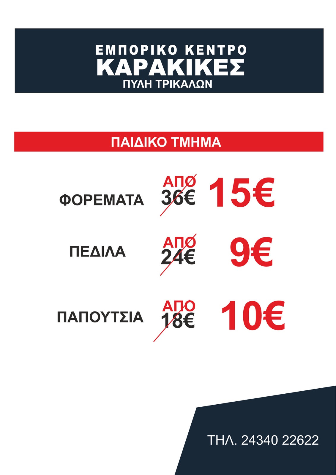 ΠΥΛΗ ΕΜΠΟΡΙΚΟ ΚΕΝΤΡΟ ΚΑΡΑΚΙΚΕΣ ΑΝΑΚΑΙΝΙΣΗ & ΟΛΑ -70% ΞΕΚΙΝΑΜΕ ΣΑΒΒΑΤΟ ΑΝΟΙΧΤΑ 10-17:00