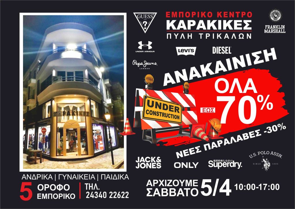ΠΥΛΗ ΕΜΠΟΡΙΚΟ ΚΕΝΤΡΟ ΚΑΡΑΚΙΚΕΣ ΑΝΑΚΑΙΝΙΣΗ & ΟΛΑ -70% . ΞΕΚΙΝΑΜΕ ΣΑΒΒΑΤΟ ΑΝΟΙΧΤΑ 10-17:00.