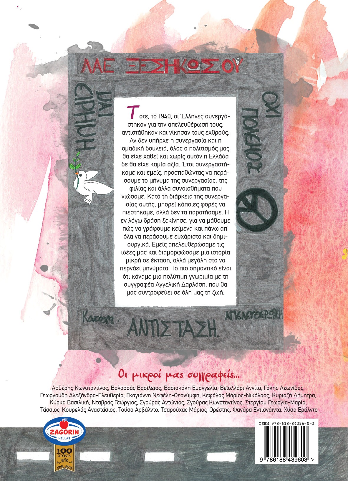 Η έκδοση προέκυψε μέσω της εφαρμογής καινοτόμων εκπαιδευτικών μεθόδων, δράσεις που ξεκίνησαν από το προηγούμενο σχολικό έτος και αποτελούν έμπνευση του δασκάλου της τάξης και μέλους του Δ.Σ. του Συνεταιρισμού, Κυριαζή Παπούλια. Το έναυσμα για την υλοποίηση της ιδέας δόθηκε από το βιβλίο της συγγραφέως Αγγελικής Δαρλάση, “Όταν έφυγαν τα αγάλματα”. Το έργο έχει στόχο να εμφυσήσει και να αναδείξει στους μαθητές τις αξίες της συλλογικότητας, της ενότητας και της φιλίας, οι οποίες είναι και βασικές για να επικρατεί παγκόσμια ειρήνη και να αποτρέπονται οι αντιλήψεις εκείνες που οδήγησαν σε μεγάλες πολεμικές συρράξεις της παγκόσμιας ιστορίας. Η έκδοση παρουσιάστηκε για πρώτη φορά στο κοινό, κατά τη τελετή λήξης του σχολικού έτους 2018 – 2019, του Δημοτικού Σχολείου Ζαγοράς, Διευθυντής του οποίου είναι ο επίσης Ζαγοριανός καθηγητής Φυσικής Αγωγής, Κυριάκος Τάσιος. Εκτός από τα κείμενα, όλη η εικονογράφηση του βιβλίου βασίζεται στις πρωτότυπες καλλιτεχνικές δημιουργίες των ίδιων των μαθητών.