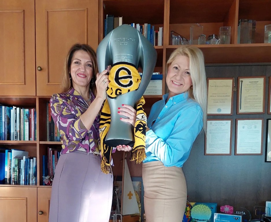 Ο άνθρωπος (… δήμαρχος Παπαστεργίου) έφερε στην πόλη και για αυτές και για όλους τους ΑΕΚτζήδες το τρόπαιο του πρωταθλητή που κατέκτησε η ΑΕΚ. Και η παλιά μου γειτόνισσα Φωτεινή με την Πέρση διακρίνονται να το κραδαίνουν υπερήφανες…