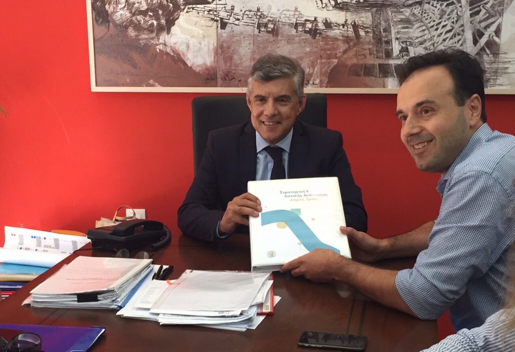 Εκείνος, ο δήμαρχος, μπήκε διστακτικά κραδαίνοντας το φάκελο που περιλαμβάνει όλα τα μεγάλα έργα που οραματίζεται για τη πόλη. Τι ποδηλατόδρομους, τι ποτάμια, τι πλατείες, τι κέντρα πολιτιστικής κληρονομιάς, τι νέους δρόμους, τι θάλασσες (… αυτό είναι δικό μου)… Όλα τα είχε γραμμένα και τακτοποιημένα…