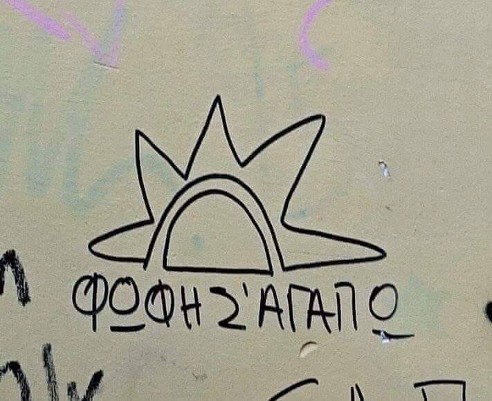 Ο Ηλιάδης απουσιάζει αυτές τις μέρες, αλλά άφησε το στίγμα του σοβατίζοντας λόγους λατρείας για τη Φώφη στους τοίχους των Τρικάλων…