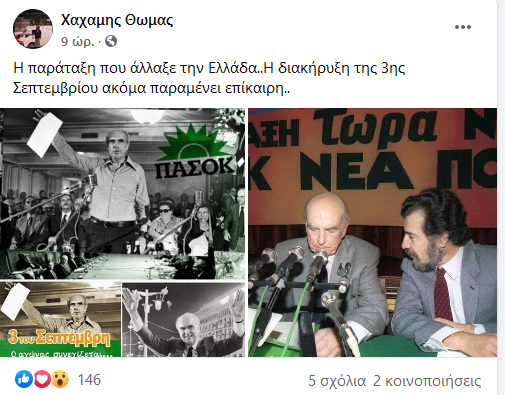 Εικόνες του Ανδρέας ανήρτησαν όλοι στις σελίδες τους… Όπως θα δείτε παρακάτω ο Παπαευθυμίου έβαλε μια αφίσα των ‘80s, ο Οικονόμου μια ομιλία του ηγέτη το 1981 και ο Χαχάμης μια μαζί με τον Γεννηματά…
