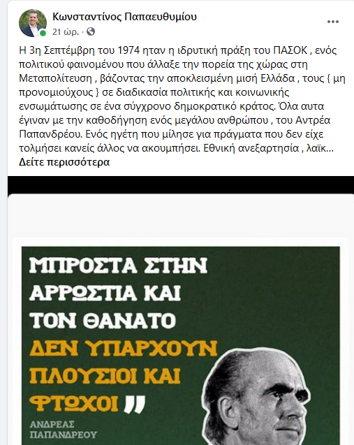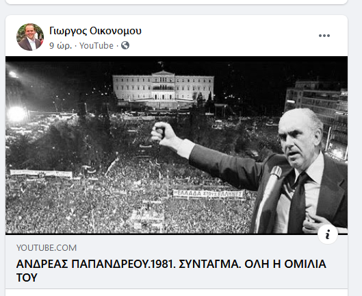 Εικόνες του Ανδρέας ανήρτησαν όλοι στις σελίδες τους… Όπως θα δείτε παρακάτω ο Παπαευθυμίου έβαλε μια αφίσα των ‘80s, ο Οικονόμου μια ομιλία του ηγέτη το 1981 και ο Χαχάμης μια μαζί με τον Γεννηματά…