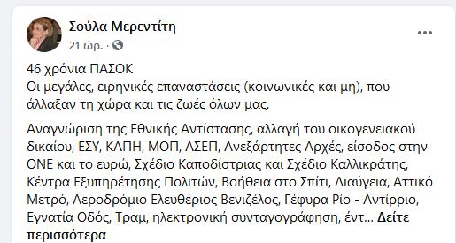 Μην κοιτάτε τώρα που τάχα μου Πασοκτζήδες ζουν γαλάζιους έρωτες (… η μισή Κυβέρνηση Μητσοτάκη είναι από δαύτους), αλλά κοιτάξτε την ουσία των πραγμάτων, των πραγματικών αγωνιστών που παραμένουν πιστοί στον Ανδρέα…