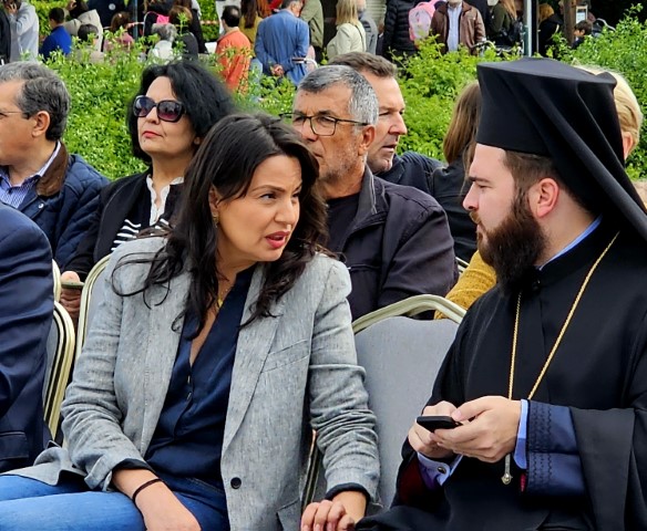 Κάπως έτσι, για αγάπη μόνο, διακρίνονται να συζητούν ο άγιος Πρωτοσύγκελλος της καθ’ ημάς Μητροπόλεως, πατέρας Αλέξιος Κανίνας και η βουλεύτρια του ΣΥΡΙΖΑ Μαρίνα Κοντοτόλη…