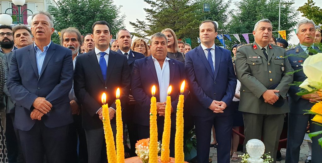 Από αριστερά ο εν δυνάμει αντιδήμαρχος Μάκης Παπαγεωργίου, ο αντιπεριφερειάρχης Γακόπουλος, ο έτερος αντιπεριφερειάρχης Μιχαλάκης, ο εν δυνάμει αντιπεριφερειάρχης Μπάρδας, ο υφυπουργός Σκρέκας, ο δήμαρχος Μαράβας, η εν δυνάμει αντιπεριφερειάρχης Νάτσινα, ο βουλευτής και εν δυνάμει υφυπουργός Λιούτας, ένας στρατιωτικός που μου διαφεύγει το όνομα και ο αστυνομικός διευθυντής Σπηλιώπουλος…
