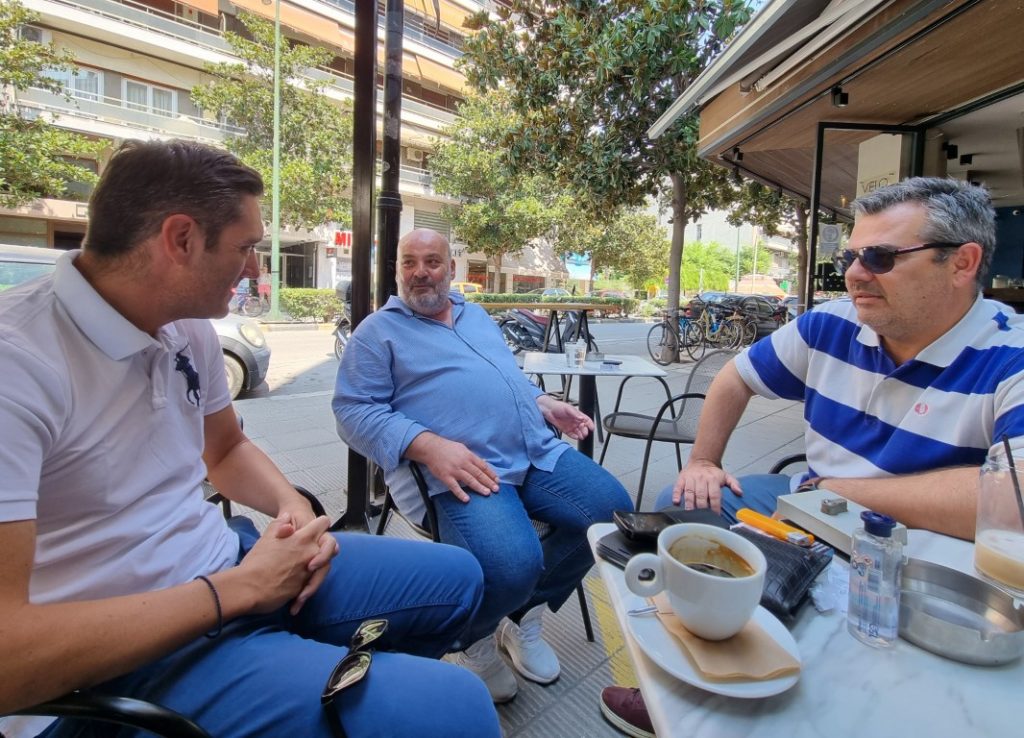 Μήπως τελικά είναι απλά φίλοι και ξέμειναν στην πόλη να πολιτικολογούν… ντάλα ήλιο στην πλατεία Χατζηπέτρου, με φραπουτσίνο και νερό;… Θαρρώ… όλα έχουν δόση αληθείας, τα παραπάνω!!!… Κι εμείς νιώθουμε μια… ταραχή…