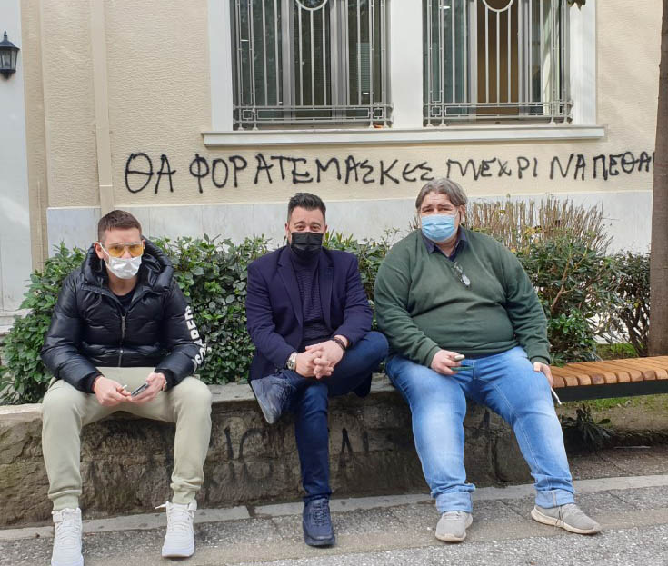 Και μένουν οι άνθρωποι αυτοί, σε μια φωτογραφία που θα μας στοιχειώνει αιώνια, στα παγκάκια μπροστά από το σύνθημα… «θα φοράτε μάσκες μέχρι να πεθάνετε»!!!… Ανατριχιάζουμε…