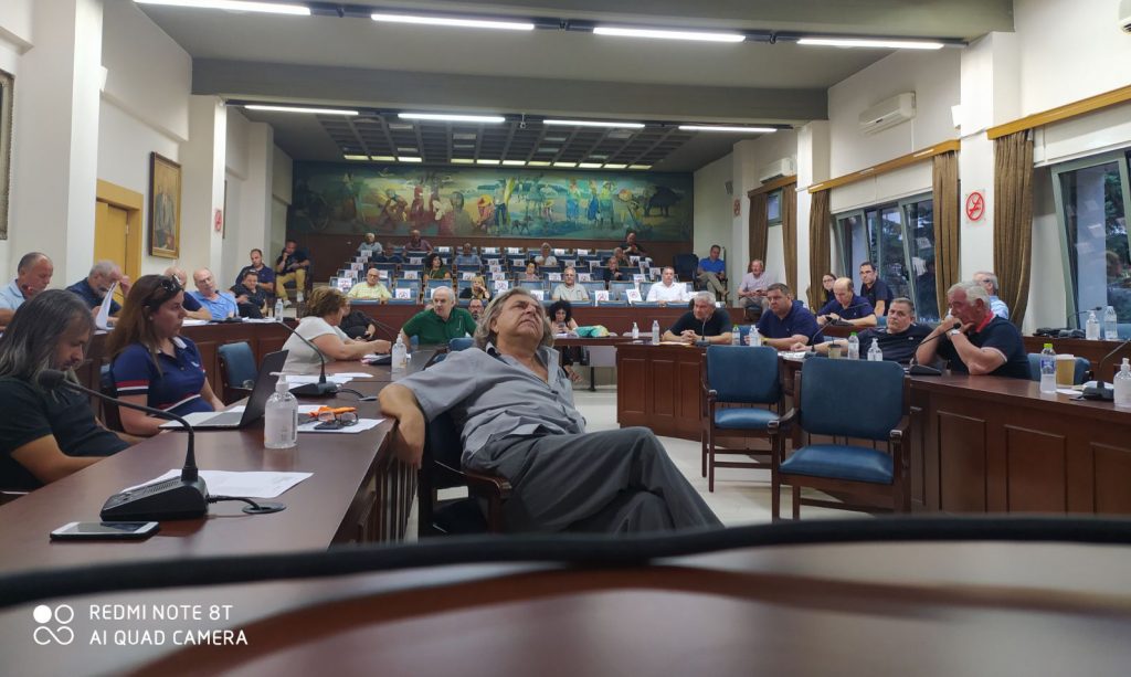 Με βήματα αργά, μα σταθερά, πήγε και κάθισε ακριβώς απέναντι από τον δήμαρχο Παπαστεργίου, καθώς λόγω κορωνοϊού έχει αλλάξει η χωροταξία στην αίθουσα, έφτιαξε τα μπατζάκια του και άνοιξε διάπλατα τα πόδια…
