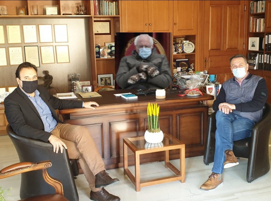 Σημειώνω μονάχα ότι αυτά τα σχέδια των δυο νέων (Παπαστεργίου-Μπλουγούρα) ξεδιπλώθηκαν παρουσία του Μπέρνι Σάντερς, του Αμερικανού γερουσιαστή με το μπουφάν και τα γαντάκια, του αποκαλουμένου και δικαίως πια «προέδρου του Ίντερνετ», που έκλεψε τη παράσταση στην ορκωμοσία του Τζο Μπάιντεν…