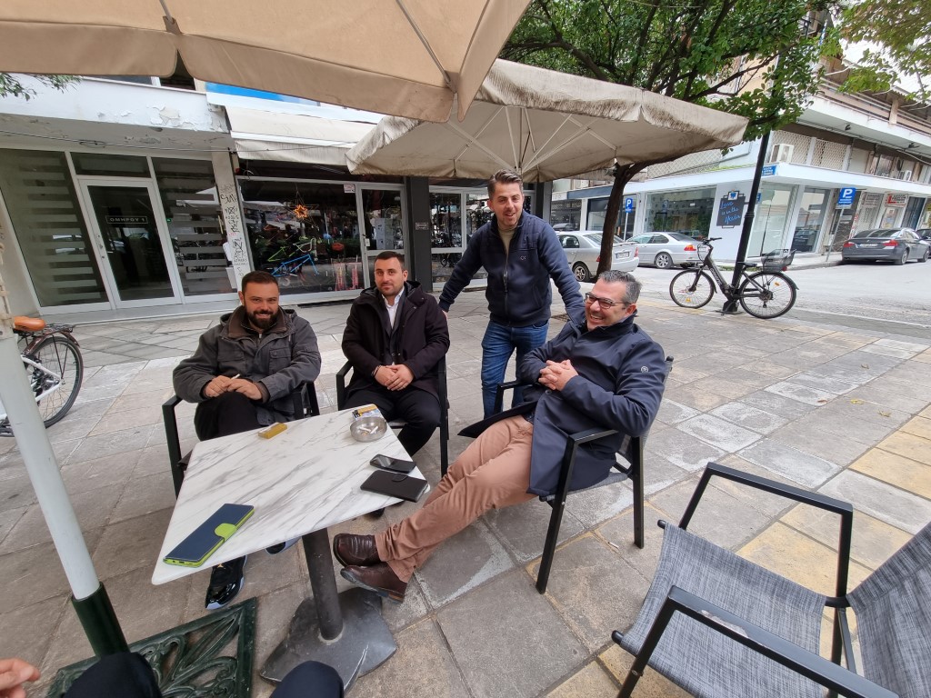Διακρίνονται μαζί του πάντα και δια πάντα ο πρόεδρος του Εμπορικού Συλλόγου Καλαμπάκας Αποστόλης Αθανασούλας, ο υποψήφιος δήμαρχος Μετεώρων Λευτέρης Αβραμόπουλος και ο ηγέτης της Ν.Δ. Πύλης Αλέκος Αραπογιάννης…