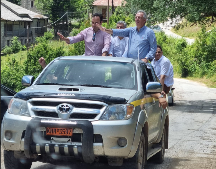 Διακρίνονται σε σουρεάλ σκηνικό πάνω στο αγροτικό που οδηγεί ο Βασίλης Αλεξίου ο βλαχόφωνος, ο και δασάρχης Περτουλίου, ο δήμαρχος Τρικκαίων και ηγέτης των δημάρχων πάσης Ελληνικής γης Δημήτρης Παπαστεργίου, ο νυν και αεί και εις τους αιώνας των αιώνων περιφερειάρχης Θεσσαλίας Κώστας Αγοραστός, ο πολυθρύλητος αναπληρωτής περιφερειάρχης Θεσσαλίας, πρωτοκορυφαίος περιφερειακός σύμβουλος της χώρας, Χρήστος Μιχαλάκης και ο άγιος της πολιτικής Χρήστος Γακόπουλος…