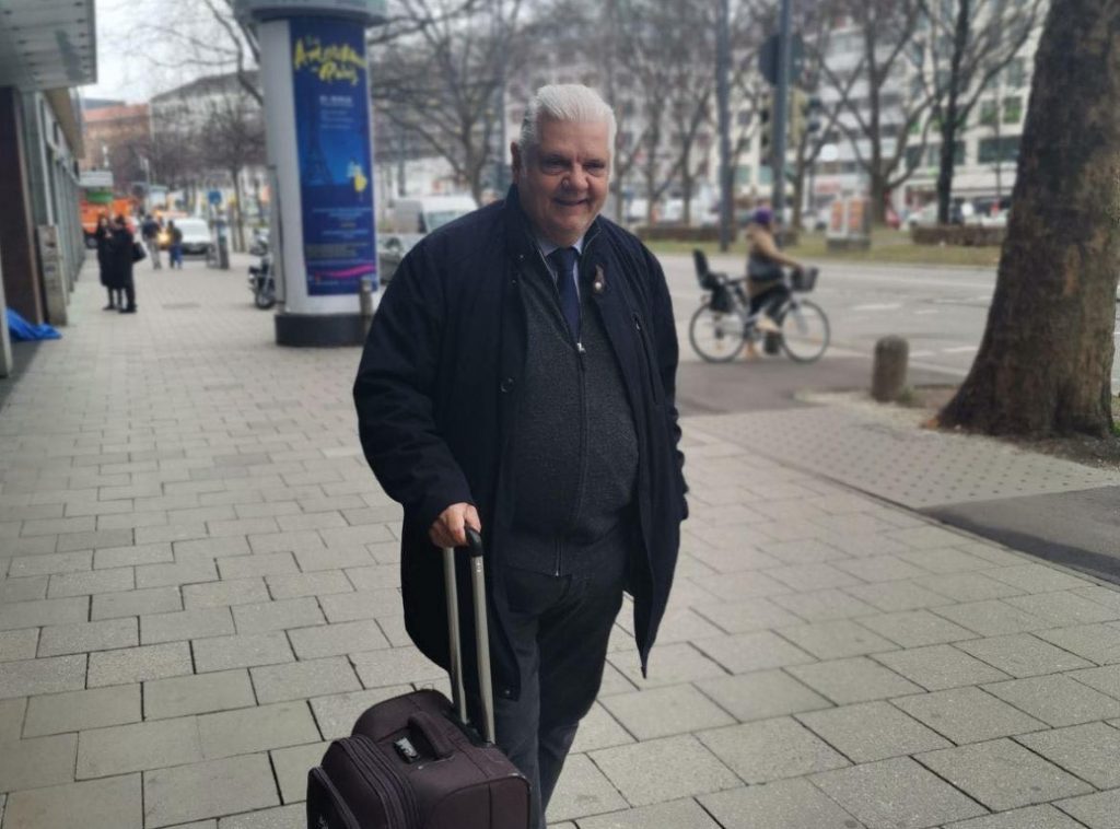 Διακρίνεται με μια βαλίτσα στο χέρι… στο σταθμό του Μονάχου, στη φωτό παραπάνω. Αφιερωμένο…