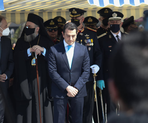 Διακρίνεται πάντως στη φωτογραφία παραπάνω, κατά την παρέλαση, όντως… εν νοερά προσευχή και πίσω του να του διαβάζει ευχές ο άγιος Τρίκκης!…