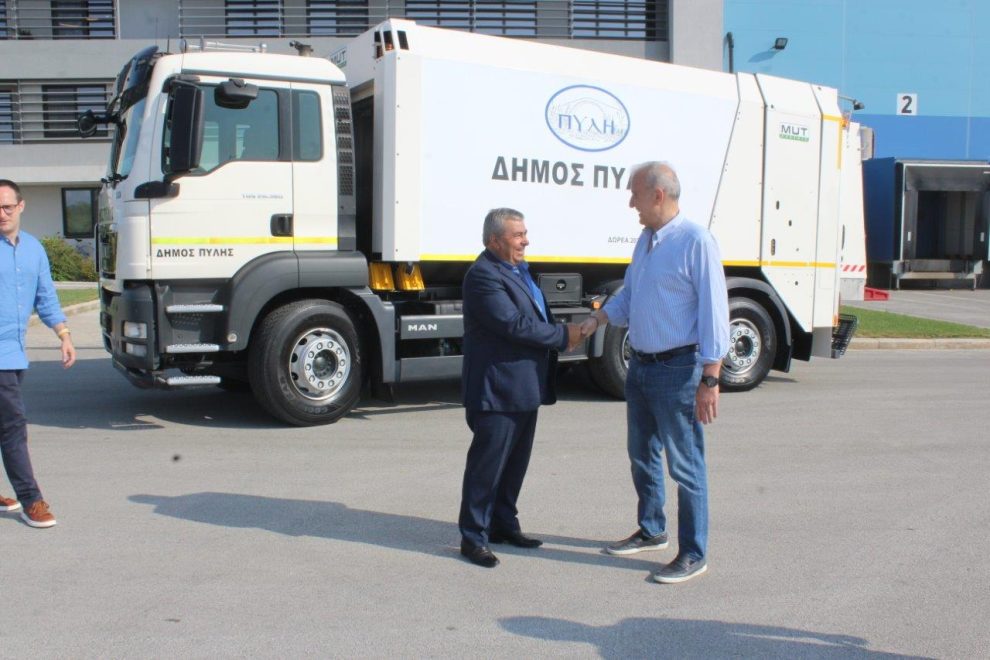 Και τέλος έπεισε τους Σαρανταίους να του δωρίσουν ένα απορριμματοφόρο για να διατηρεί πεντακάθαρα τα χωριά του. Διακρίνεται χαρακτηριστικά με τον Μιχάλη Σαράντη κατά την παράδοση…
