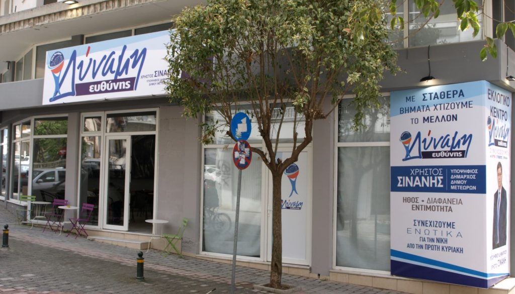 Το εκλογικό κέντρο του Χρήστου Σινάνη άνοιξε από την Μεγάλη Τετάρτη και υποδέχεται τους δημότες που ήδη δημιουργούν… κύμα νέας νίκης. Το εκλογικό κέντρο του συνδυασμού «ΔΥΝΑΜΗ ΕΥΘΥΝΗΣ» βρίσκεται σε πλήρη λειτουργία επί της οδού Ομογενών Αμερικής 6, παραπλεύρως Δασαρχείου Καλαμπάκας.