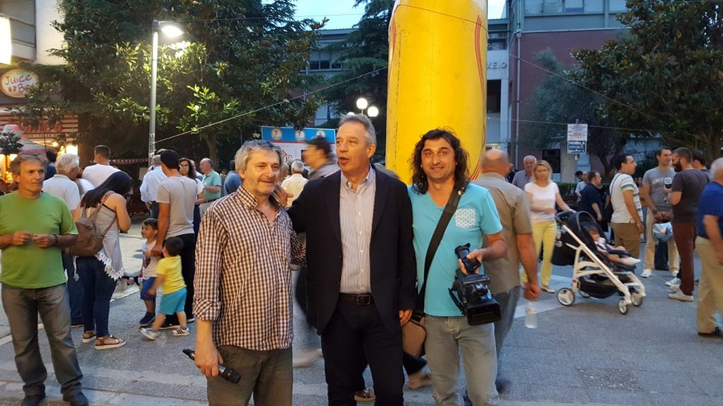 Τον… πρόδωσαν κι οι φίλοι του τον Αργυρούση. Διακρίνονται σε επική φωτό τα δυο του πουλέν, οι κάμεραμέν που έγραψαν ιστορία στην τηλεόραση, οι ραδιοφωνικοί παραγωγοί για τους οποίους μιλάει όλη η Θεσσαλία, οι άνθρωποι με τους οποίους πορεύτηκε μαζί όλα τα χρόνια της επαγγελματικής του ζωής, Βασίλης Κωνσταντάκος και Κώστας Χρυσάνθης (μορφή) με τον… Μιχαλάκη!… Δηλώνουν πρόθυμοι (Κωνσταντάκος και Χρυσάνθης) να τα εγκαταλείψουν όλα και να τον ακολουθήσουν στην… οδό της επιτυχίας και της πολιτικής!!!… Θα πηδηχθύμε απ’ το παράθυρο, μα την αλήθεια…