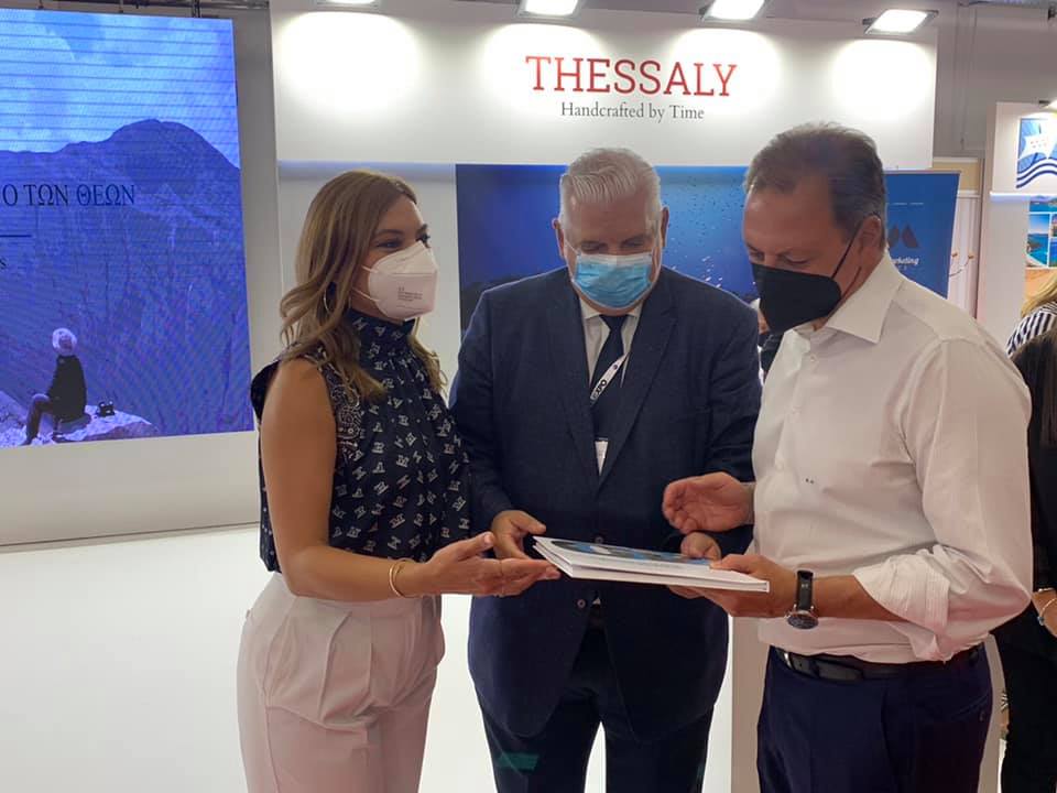 Ο περιφερειακός σύμβουλος Τρικάλων υποδέχθηκε στο περίπτερο της Περιφέρειας το σύνολο των κυβερνητικών στελεχών και εκτός από τους τουριστικούς προορισμούς της Θεσσαλίας τους μίλησε για την τεράστια προσπάθεια που γίνεται σε όλους τους τομείς και φέρνουν την Περιφέρειά μας πρωτοπόρα σε έργα και δράσεις. Ο ίδιος παρέμεινε ικανοποιημένος από τις επαφές και οι φιλοξενούμενοί του απήλθαν άπαντες… ενθουσιασμένοι.