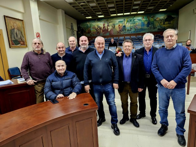 Τέλος εποχής για δημοτικούς συμβούλους που έγραψαν ιστορία στα έδρανα του Δημοτικού Συμβουλίου Τρικκαίων, άλλος περισσότερο, άλλος λιγότερα χρόνια. Αποσύρονται οι (από αριστερά) Γιώργος Μητσιούλης, Κώστας Ψύχος, Θανάσης Γεροκώστας, Κώστας Κρεμμύδας, Θόδωρος Σπανός, Ζήσης Γκουγκοστάμος, Τάκης Βασταρούχας και Κίτσος Αναστασίου, να πλαισιώνουν τον δήμαρχο Νίκο Σακκά. Άντε και… καλοί πολίτες, πια!!!… Αξίζουν…