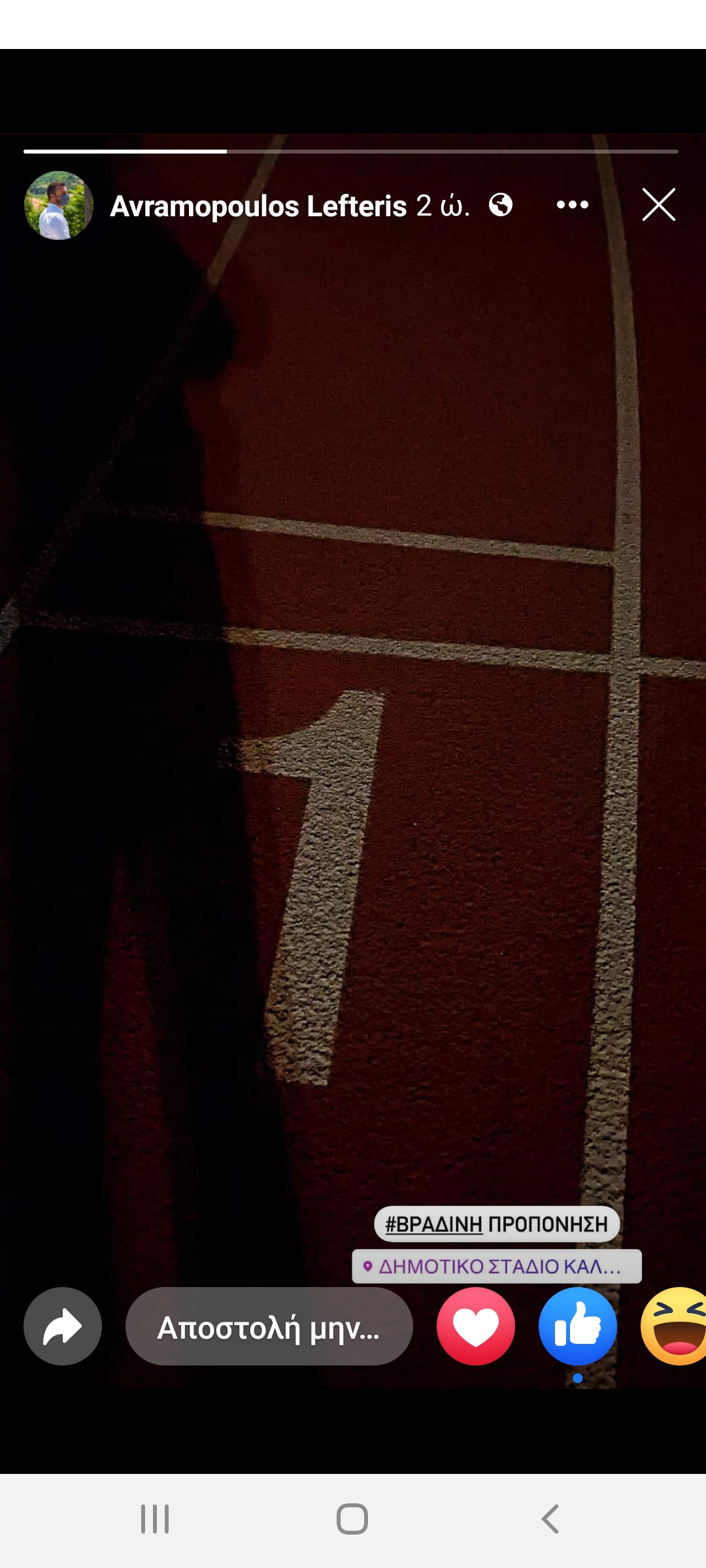 Έχει τη σημασία του όμως… που έβγαλε τη φωτογραφία που κοινοποίησε στα social media. Στο νέο ταρτάν της Καλαμπάκας, στη θέση… νο1 του στίβου!!!… Το πιάσατε το υπονοούμενο…