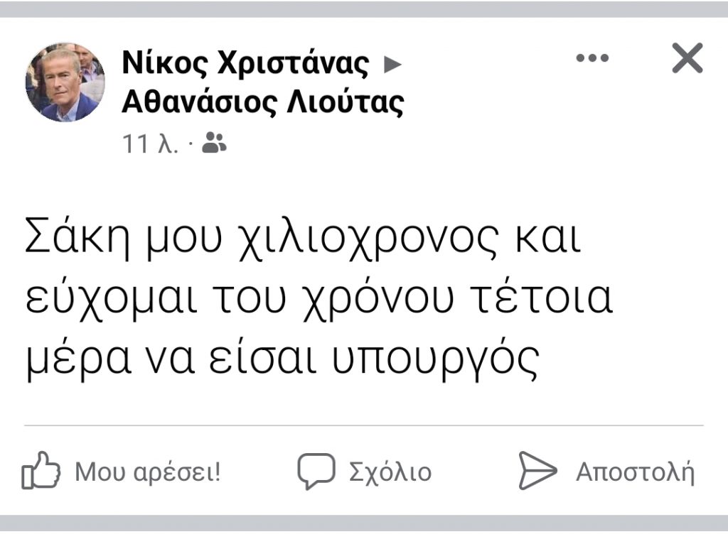 Ξεχωρίσαμε, από τις δημόσιες, αυτές του μέλους της ΔΕΕΠ Τρικάλων Νίκου Χριστάνα που του ευχήθηκε το προφανές: Του χρόνου τέτοια μέρα υπουργός!… Ω, ναι…