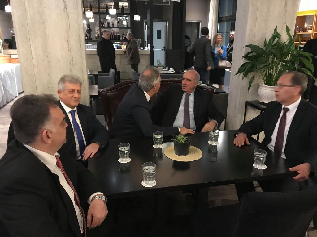 Στη φωτό παραπάνω διακρίνονται να τα λένε… σχεδόν ψιθυριστά Μεϊμαράκης-Μιχαλάκης, παρουσία ωστόσο του πιστού φίλου και συνοδοιπόρου του αντιπεριφερειάρχου, Ιωάννου Κουτσονάσιου του ιατρού, του προέδρου της ΝΟΔΕ Κώστα Τρέλλη και του τομεάρχη Νίκου Καρδούλα.