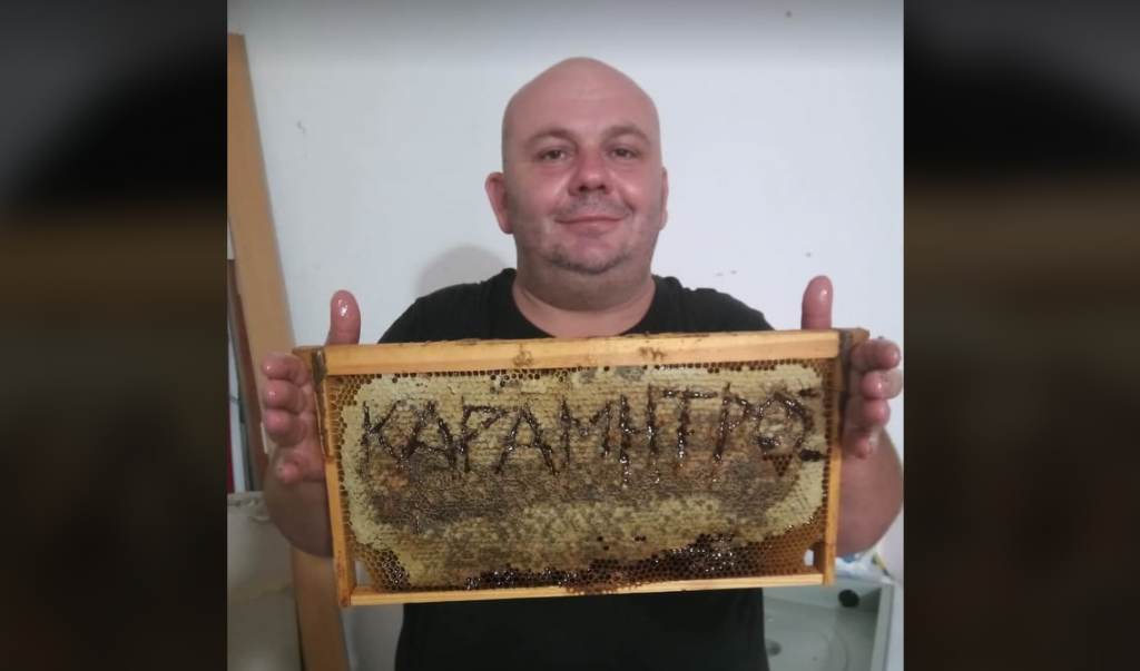 Έβγαλε την πρώτη σοδειά μελιού για φέτος και καμαρώνει με την κυψέλη, αναγράφοντας πάνω και το όνομά του. Αυτά κάνει και… τρελαίνει κόσμο!…