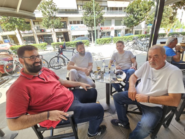 Βασικός πυλώνας του δόγματος “Πρώτα ο άνθρωπος” του δημάρχου Μαράβα ο Μάκης Παπαγεωργίου ανέλαβε και έφερε εις πέρας τη δύσκολη αποστολή του συμμαζέματος των οικονομικών του Δήμου. Δυο βδομάδες πριν τη κάλπη μπορεί να… αναλάβει δυνάμεις σε μια μικρή ανάπαυλα απολαμβάνοντας δυνατό καφέ!… Διακρίνεται με τον θρύλο της ΕΠΣΤ και ισόβιο πρόεδρο αυτής, πεθερό του, Θανάση Μπουτζιώλη, τον πρόεδρο της Τοπικής Πύλης της Ν.Δ. Αλέκο Αραπογιάννη και τον πρόεδρο του Γαρδικίου Άρη Αλεξίου.