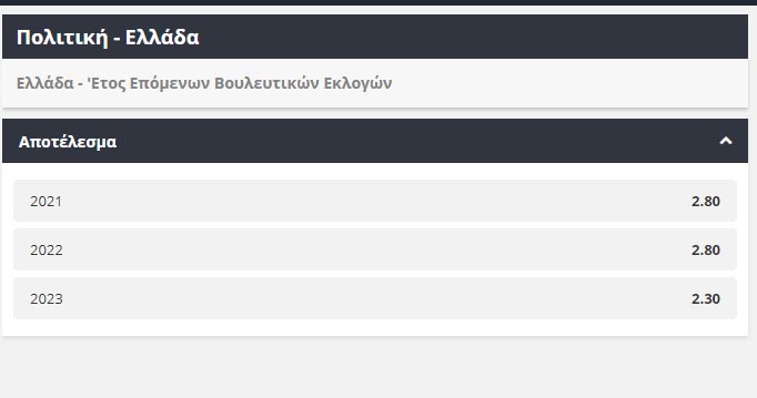Σημειώστε τέλος ότι ακόμη και τα… στοιχήματα δίνουν πλέον ως πιο πιθανή τη προσφυγή στις κάλπες τη νέα χρονιά. Όπως καταγράφει το trikalavoice.gr στη Novibet “έπαιζε” 1 προς 4 πριν από ένα μήνα το 2021 ως έτος εκλογών, ενώ τώρα έπεσε στο… 2,80. Αξίζει η παρατήρηση.