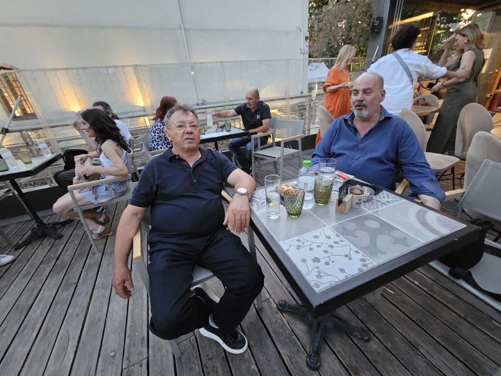 Διακρίνονται στη φωτό ο Ζήσης Γκουγκοστάμος και ο εμφανώς αδυνατισμένος και πολύ ανανεωμένος Κώστας Κρεμμύδας να παίρνουν το απεριτίφ τους στο περιθώριο των εγκαινίων και της συναυλίας. Είχαν να συζητήσουν κι αυτά τα ΠΑΣΟΚικά τους!!!…