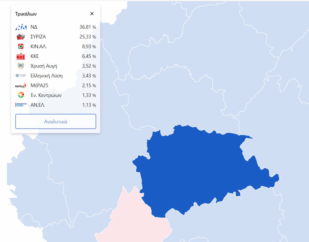 Όπως καταγράφει το trikalavoice.gr η Ν.Δ. είχε πάρει τότε 36.81% και ο ΣΥΡΙΖΑ είχε ξεπεράσει το 25%.