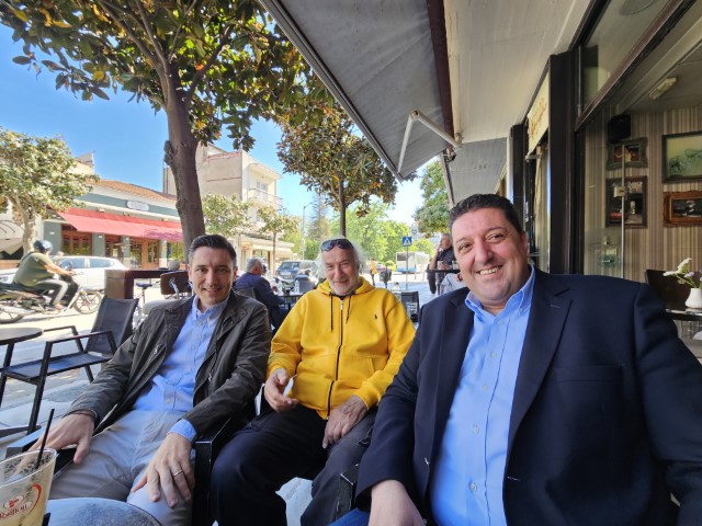 Διακρίνονται ο πρόεδρος της “Αστικής Ανάπτυξης” Γιώργος Ζιώγας, ο τέως αντινομάρχης Αχιλλέας Αλεξίου-ο σοφός της παρέας-και ο mister ΓΕΡΜΑΝΟΣ Δημήτρης Κέμος. Με σωστές συμβουλές… τα καλύτερα έρχονται!!!
