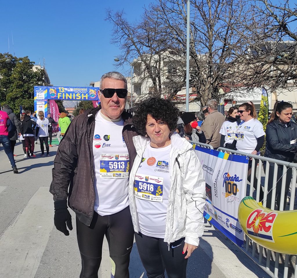 Φέτος έκανε το… ένα βήμα παραπάνω και μπήκε και η ίδια στον αγώνα!… Έχοντας τον σύζυγό τους Λάκη Καρά στο πλευρό τους έβγαλε με άνεση τη μικρή διαδρομή των 5 χλμ. και αποθεώθηκε στο φίνις. Και μη νομίζετε ότι μετά έπιασε μια καρέκλα και κάθονταν. Έτρεχε πάλι δεξιά κι αριστερά να συντονίσει τις ενέργειες ως αρμόδια αντιδήμαρχος Αθλητισμού, αλλά και να δώσει αυτή την ώθηση στους αθλητές που συμμετείχαν με την φιλαρμονική-της οποίας έχει την ευθύνη-και η οποία έπαιζε “ανεβαστικά” από την αρχή της Στρατηγού Σαράφη…